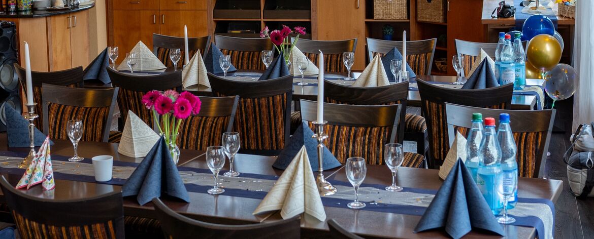 Ob familiäre Zusammenkunft, würdevoller Abschied oder fröhlicher Geburtstag – in unserem Haus finden Sie den passenden Rahmen für Veranstaltungen im kleinen bis mittleren Kreis.